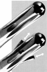 The Greenwald Roth Grip Urethral Suture Guide features a modified metal urethral sound with suture guiding grooves to facilitate exposire of the urethra and the precise placement of up to six sutures. Although the primary use of this suture guide has been to allow the surgeon to direct sutures easily through the urethra into a nonyielding and movable internal guide, the device also has proven helpful for pushing out and exposing the stump of the urethra (in some cases, especially those with prior trans-urethral resection or those with a capacious urethra, the urethra slides over the end of the suture guide and could not be otherwise adequately pushed into view). In addition for this improved suture guide (patent pending), deeper and more sharply cut shoulders of the grooves direct the needle to a more perpendicular position than on the original guide (part B of figure). |